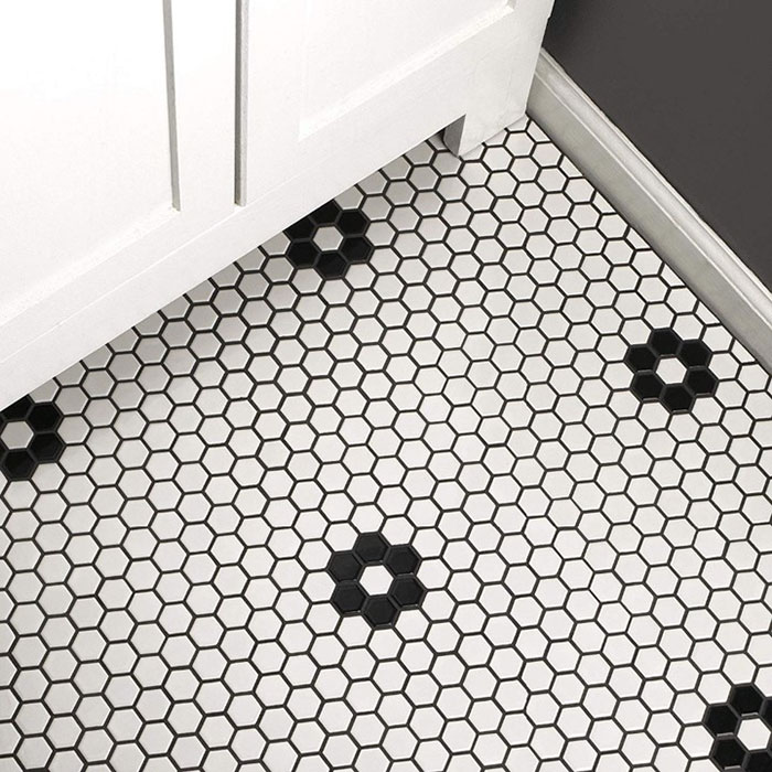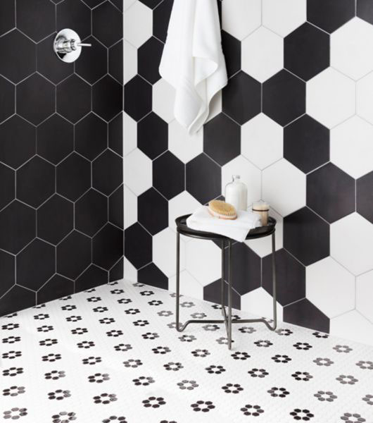 These mosaics are an ideal choice if you’re after the monochrome geometric style and creating a beautiful multi-dimensional effect. Being on a mesh back, this tiles are ideal for uneven surfaces such as curves of pillars, this also makes them extremely easy to lay. An ideal tile for a kitchen backsplash or bathroom surface.
