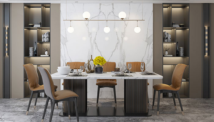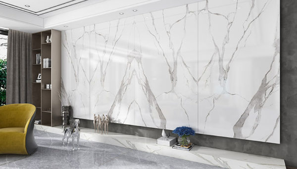 The marble effect adapts to all contemporary uses because it conveys the splendour of marble coverings in the third millennium, combining simplicity of cleaning and practicality of installation with a surprising decorative richness capable of embellishing any type of environment.